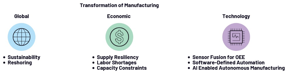 制造業正處于一場轉型浪潮之中,消費者對個性化產品需求的增長,加之疫情后供應鏈危機催生的產業回流趨勢等,成為推動這一變革的主要驅動力。而這些,僅僅是眾多挑戰中的冰山一角。與此同時,全球各國政府也紛紛出臺相關法規,以減少制造業的碳排放,從而實現溫室氣體凈零排放目標。應對這些挑戰將為工業制造企業開辟全新的發展賽道,企業可借此契機引入前沿技術,在降低碳排放的同時,提高制造業的生產效率、可擴展性和靈活性。